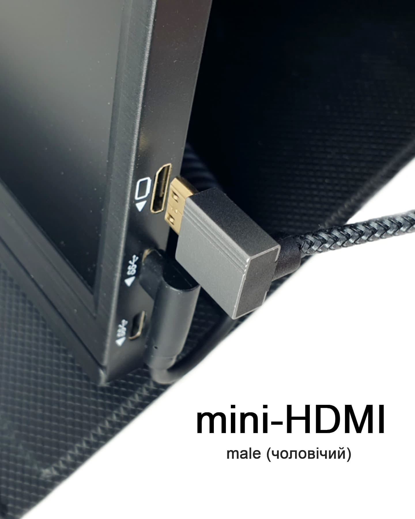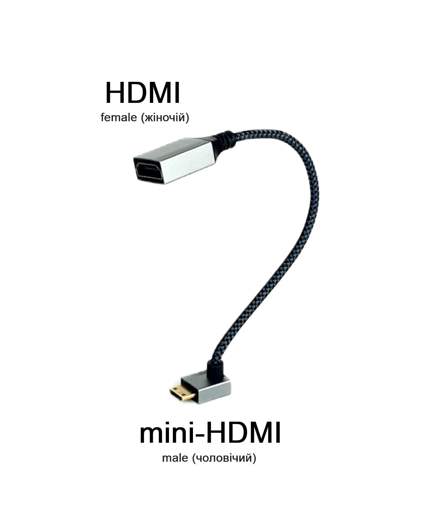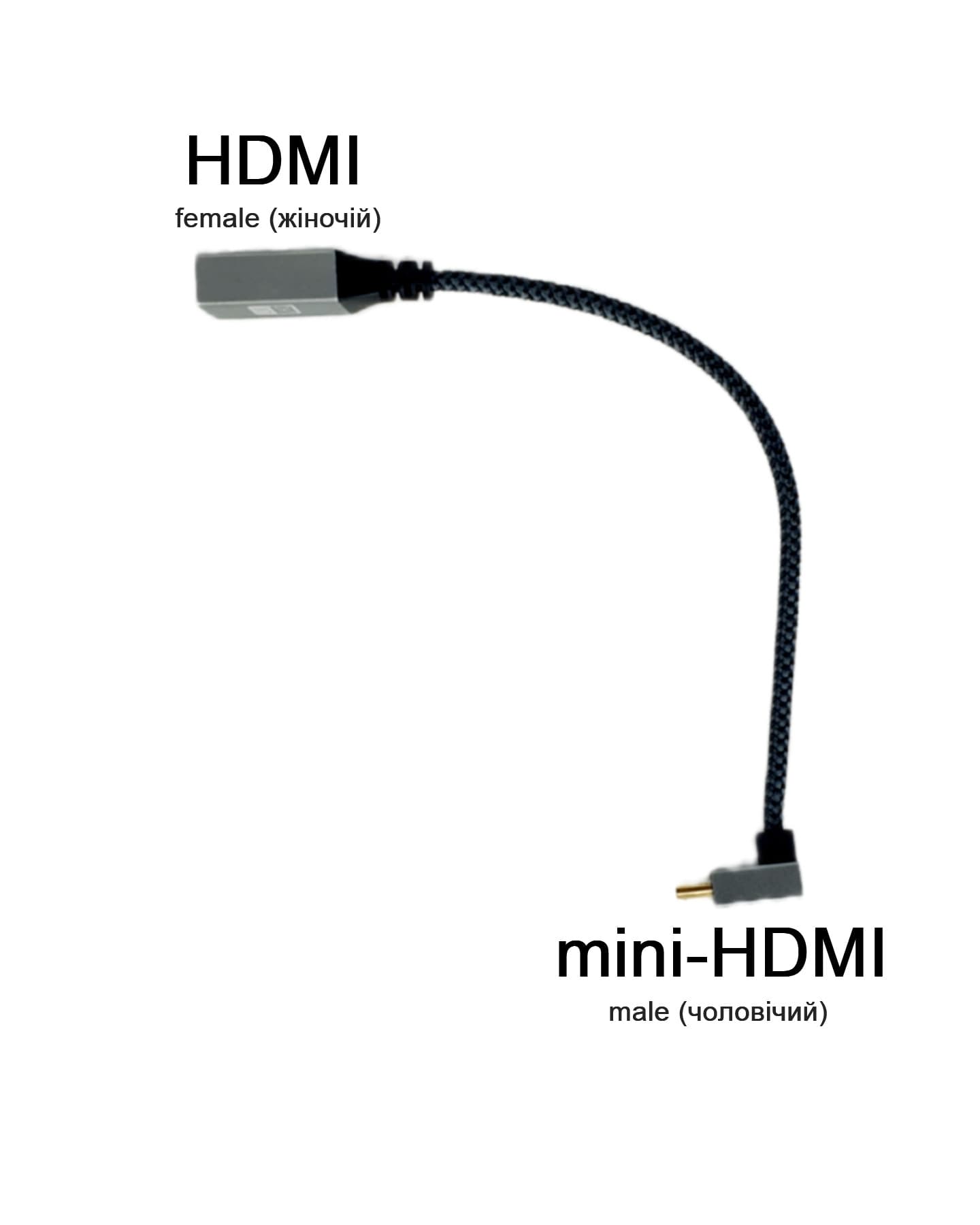 Кабель з mini-HDMI під кутом вверх ↑ (Male) та HDMI прямий (Female)