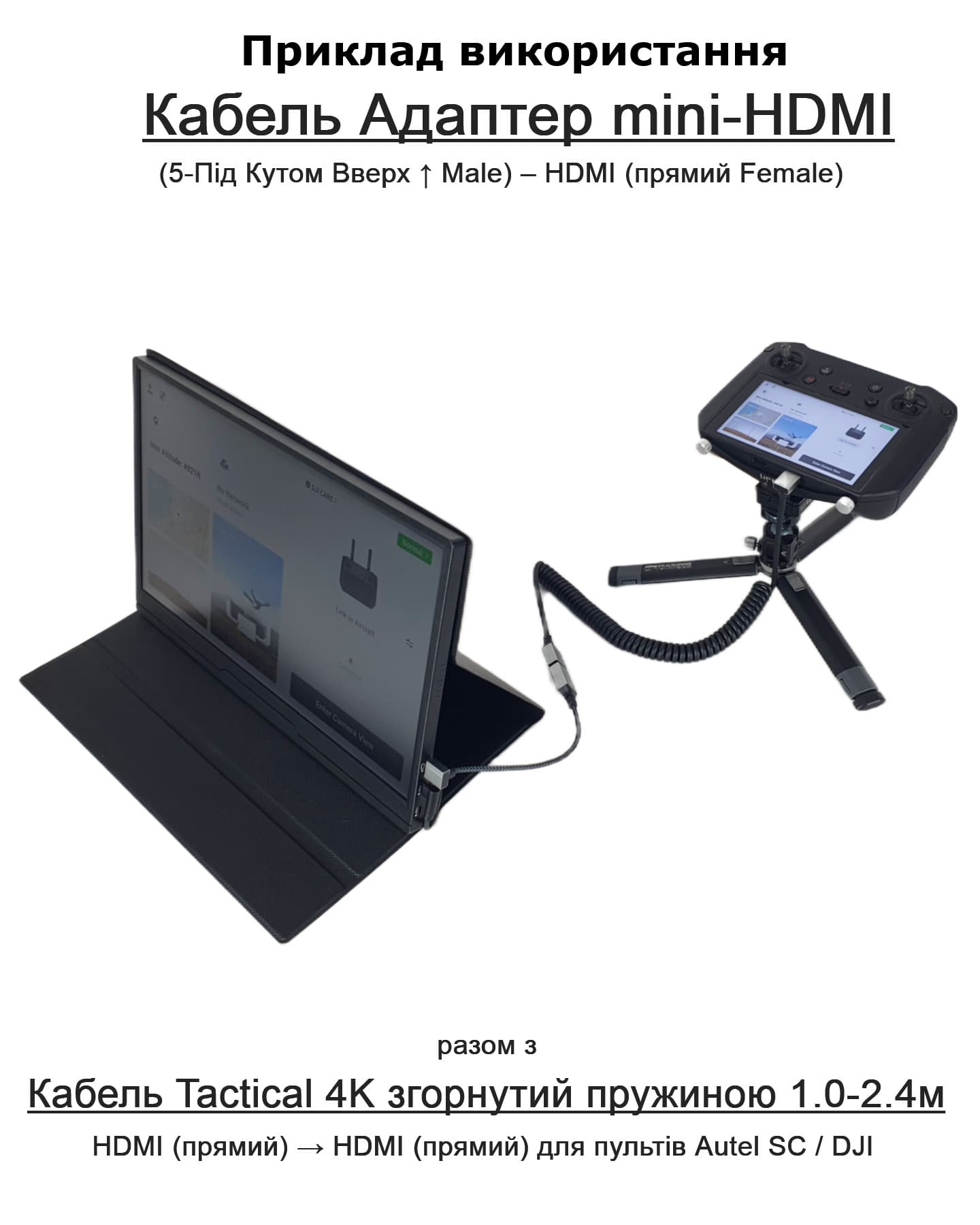 Такі кабелі йдуть у п’яти різних варіантів під різними кутами, які можна знайти в магазині під категорії (Кабель Адаптер mini-HDMI).